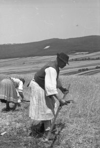 | Címke | asszony / bocskor / férfi / főkötő / ing / kalap / kasza / kaszáló / kézelőtlen vászoning / mellény / pruszlik / ruha / sarló / szoknya / vászongatya |