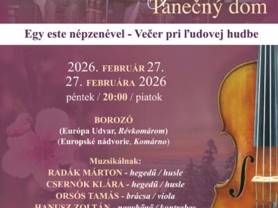 Helyszín: Borozó, Európa Udvar, Komárom Időpont: 2026. február 27., 20:00 A táncházban táncoktatás lesz.