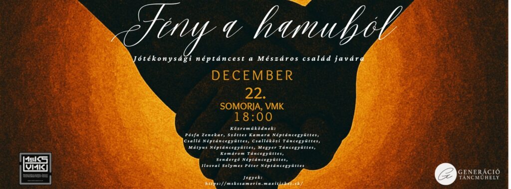 A Generáció Táncműhely és a somorjai Városi Művelődési Központ jótékonysági néptáncestet szervez, amelynek teljes bevétele a családot támogatja. A helyszínen támogatói jegyek is elérhetők.